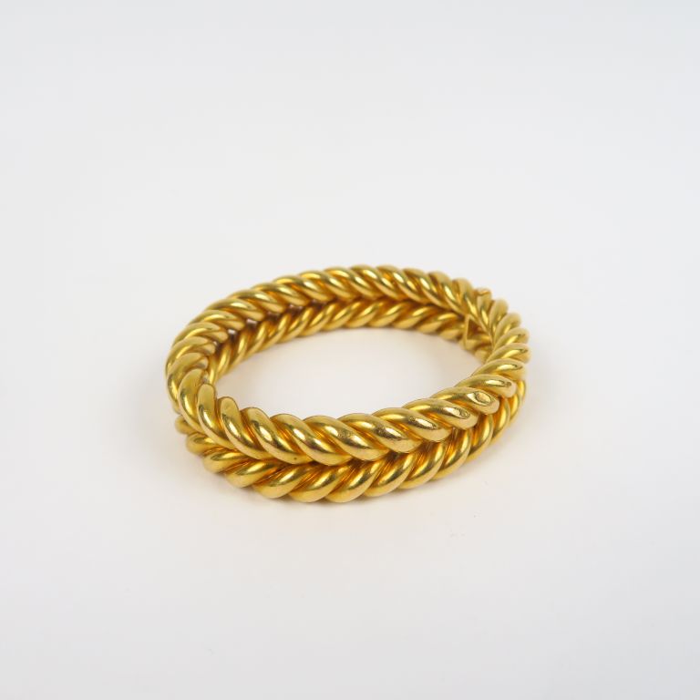 Bracelet double rangs torsadés en or jaune. Poids. 49,40 g