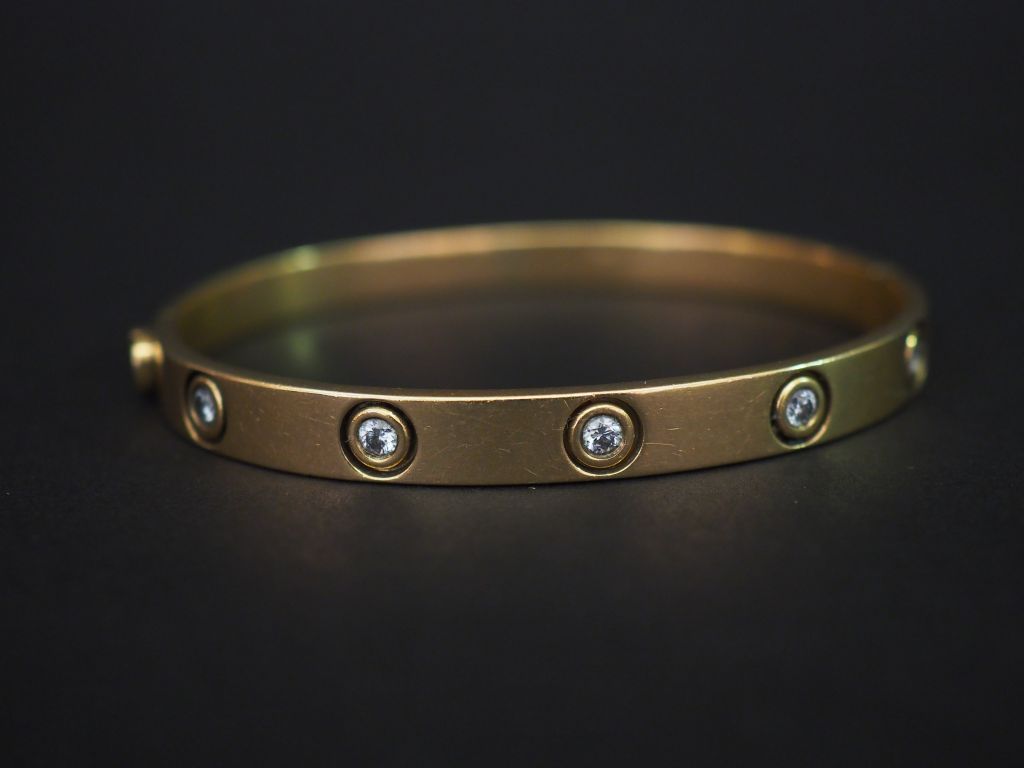 Bracelet en or et cinq brillants. Poids tel : 31,70 g