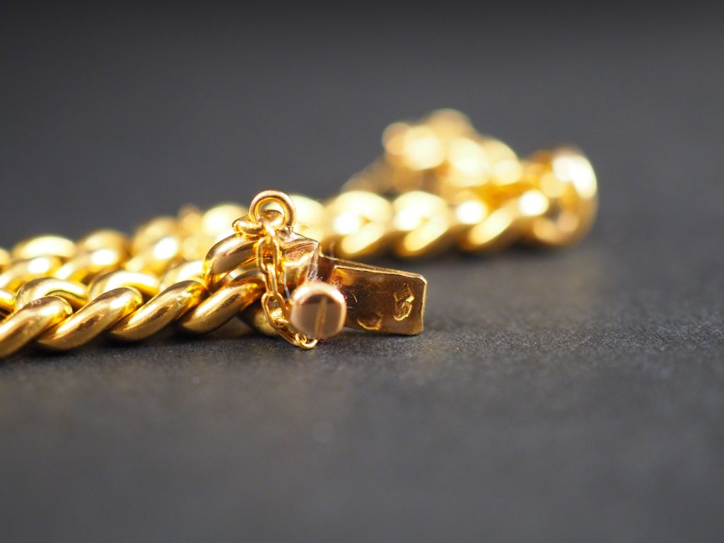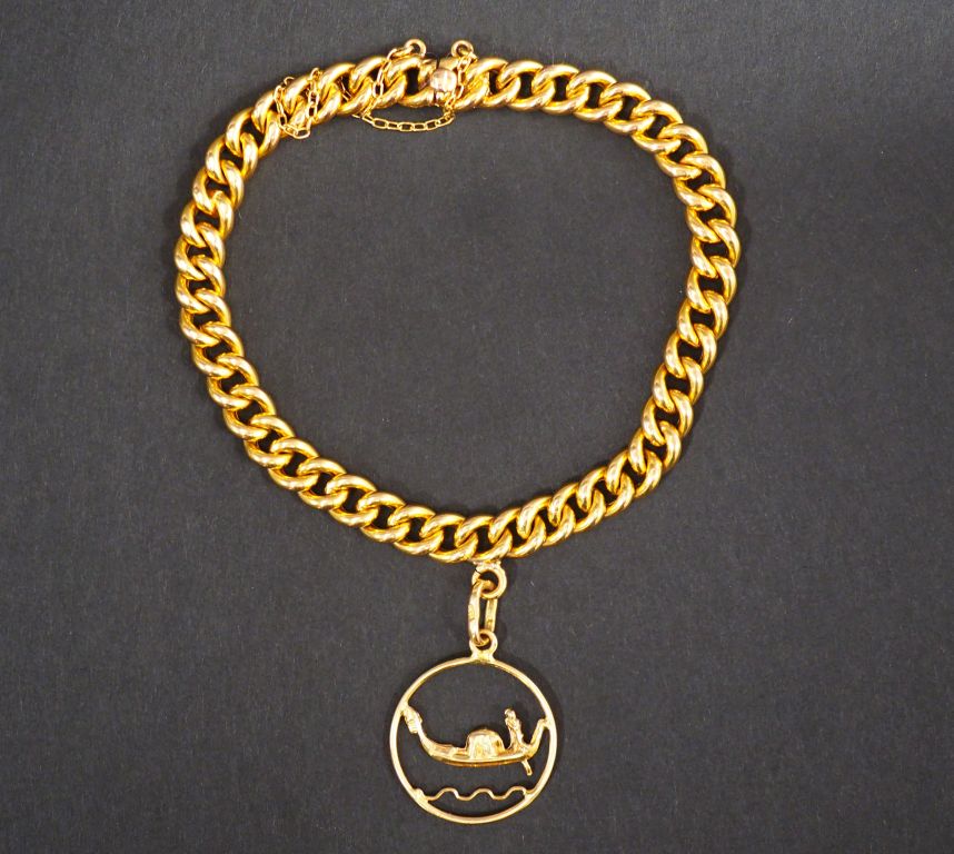 Bracelet en or jaune, maille gourmette, orné d'une pendeloque. Poids. 11,10 g