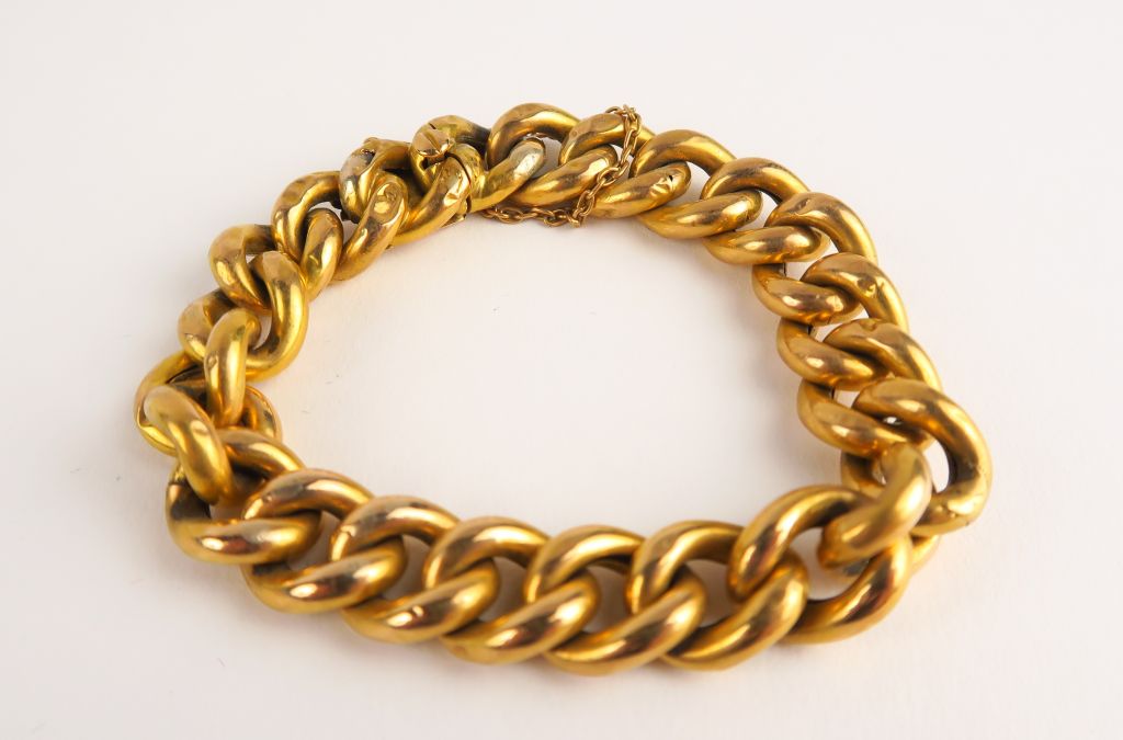 Bracelet en or, maille gourmette (enfoncements). Poids : 17,11 g