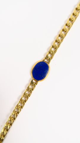 Bracelet maille gourmette et médaillon en lapis lazuli. Poids tel : 33 g