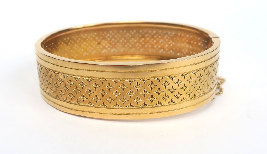 Bracelet manchette Napoléon III en or. Dans son écrin. Poids : 19,2 g
