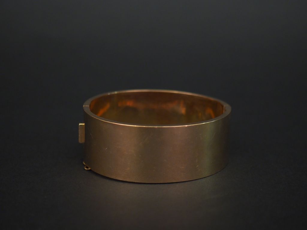 Bracelet manchette Napoléon III en or jaune et perles, à décor d’une frise de fleurs. Largeur. 2,5 cm Poids tel. 37,74 g
