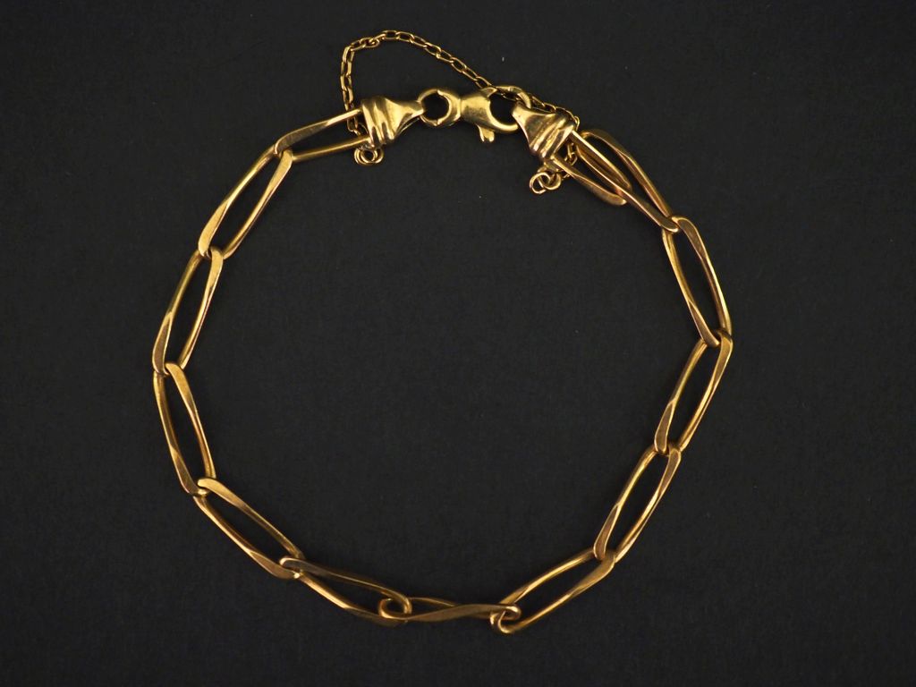 Bracelet souple en or jaune 750, maille cheval. Chainette de sécurité. Poids. 7,80 g
