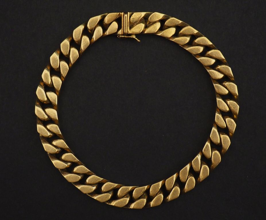 Bracelet souple en or jaune 750, maille gourmette. Larg. 0,8 cm Long. 20,5 cm Poids. 37,6 g