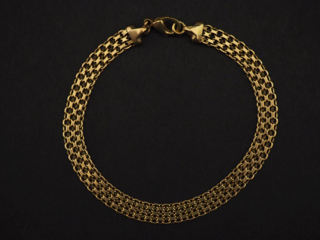 Bracelet souple en or jaune 750, maille plate tressée et ajourée. Long. 20 cm Poids. 8,96 g