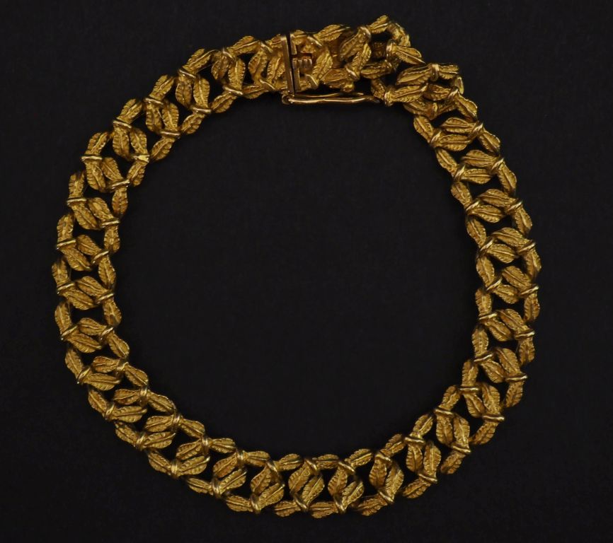 Bracelet souple en or jaune 750, maillons feuillagés. Long. 17,5 cm Poids. 30,20 g