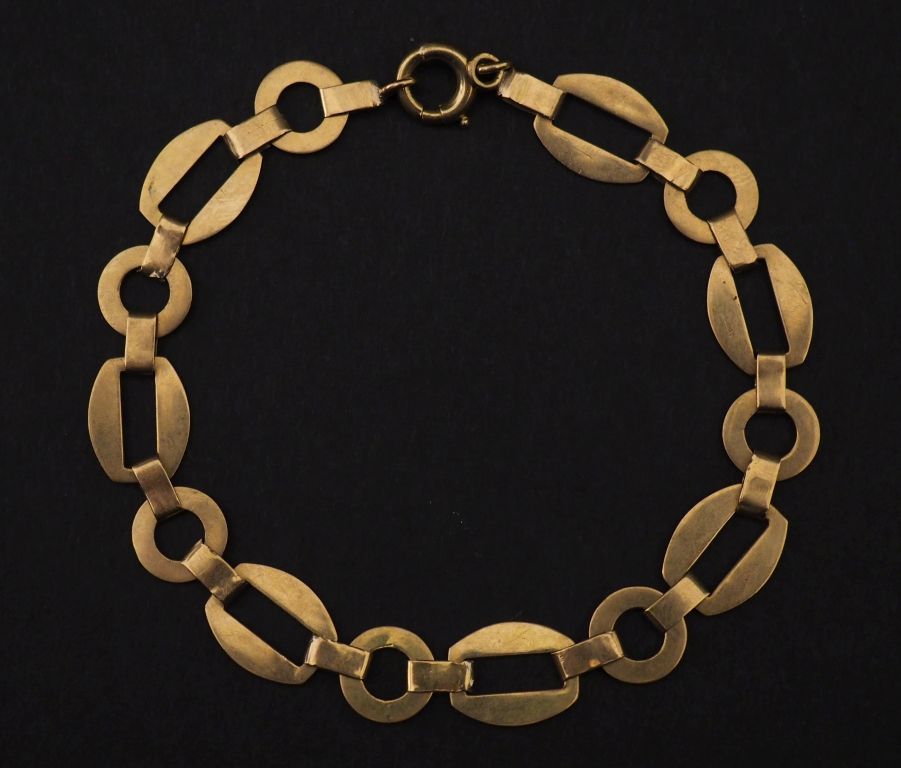 Bracelet souple en or jaune 750, maillons plats ovales, ronds et rectangulaires. Long. 19 cm Poids. 8,30 g