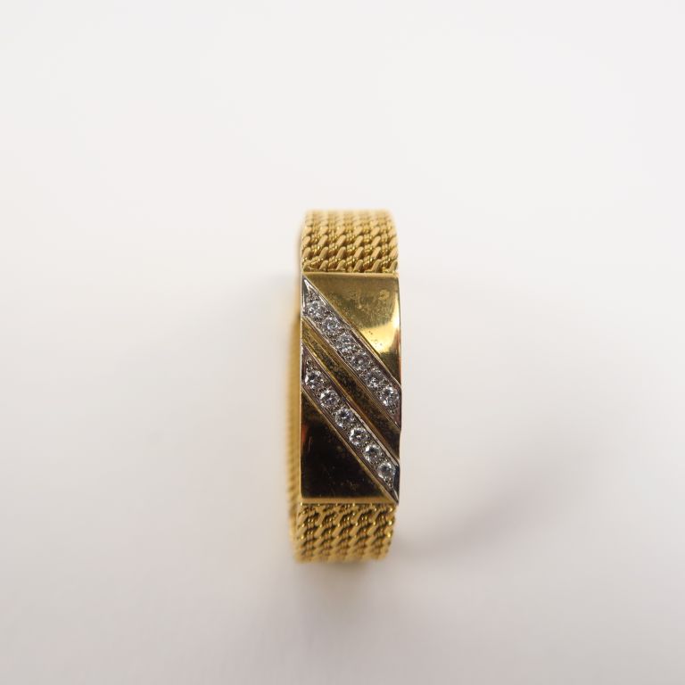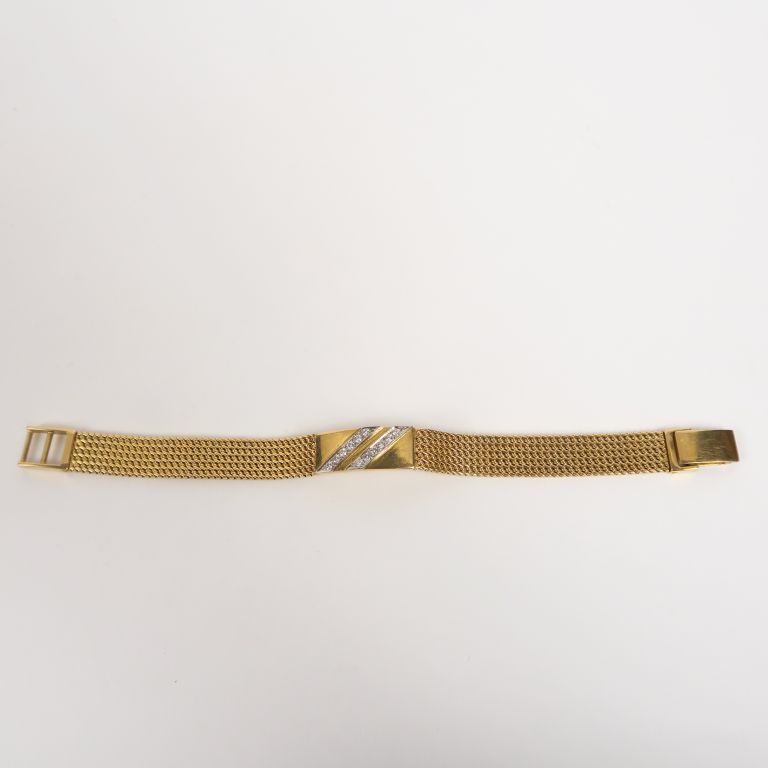 Bracelet souple en or jaune et deux lignes de brillants. Poids. 30 g