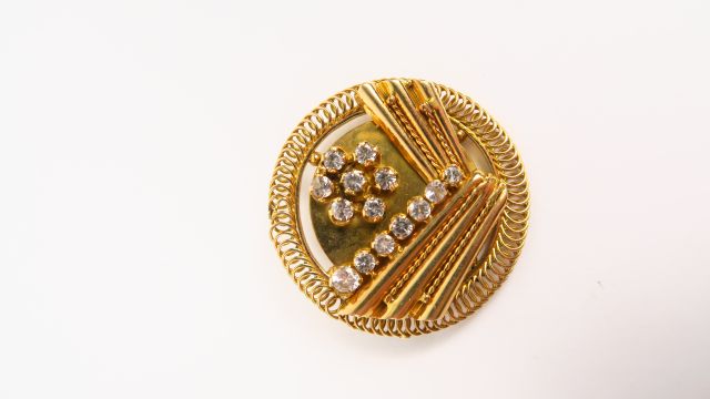 Broche de style Art déco en or et pierres à l'imitation du diamant. 17,8 g