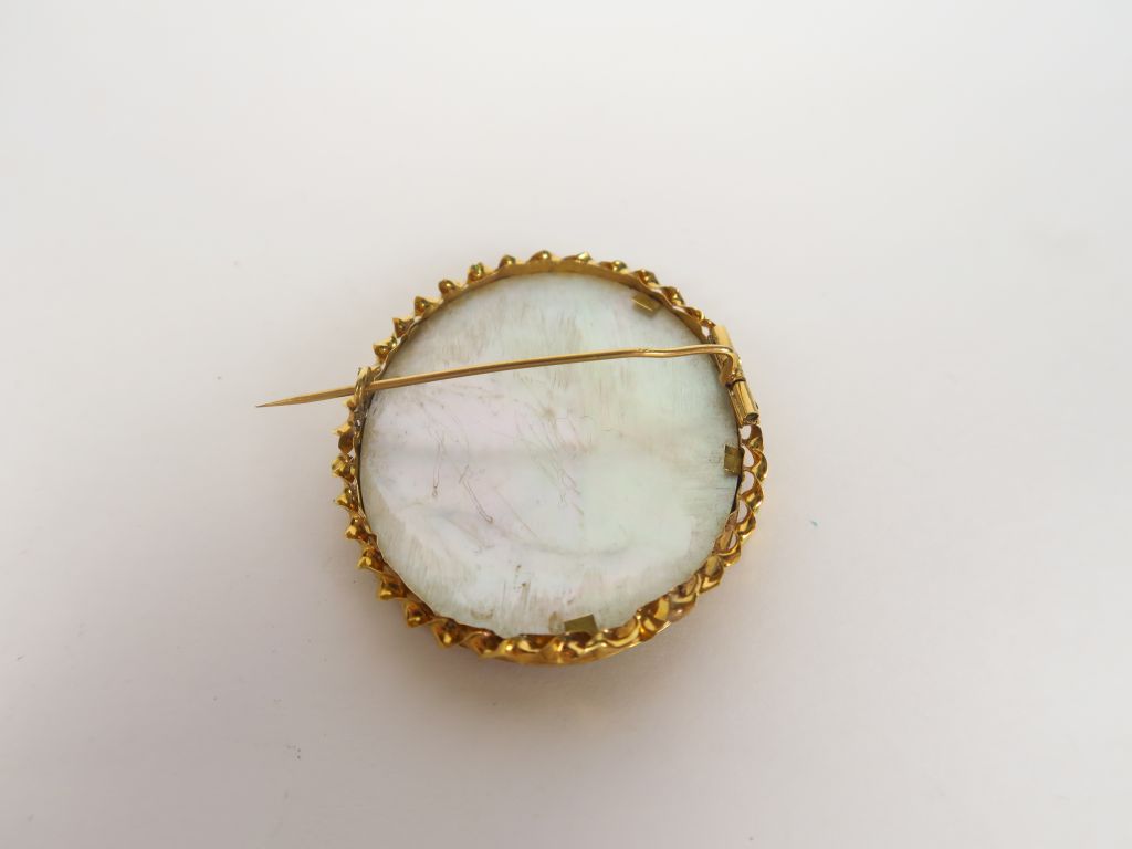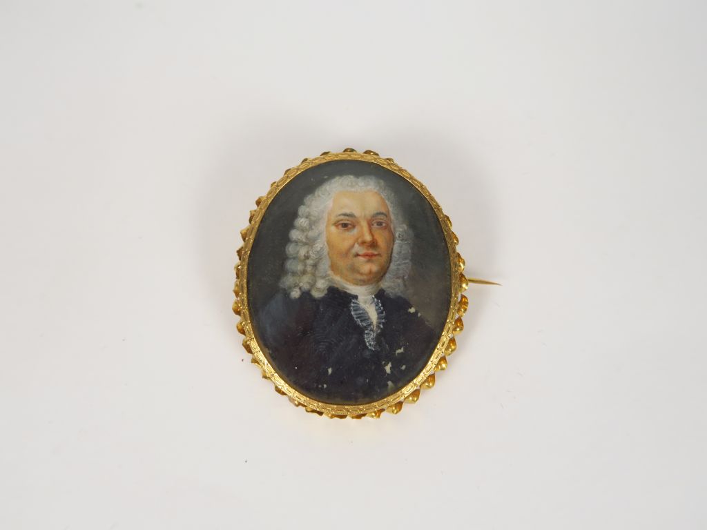 Broche en or fin XVIIIème, ornée d'une miniature sur nacre 'Portrait d'homme'. Poids tel.13,52 gr