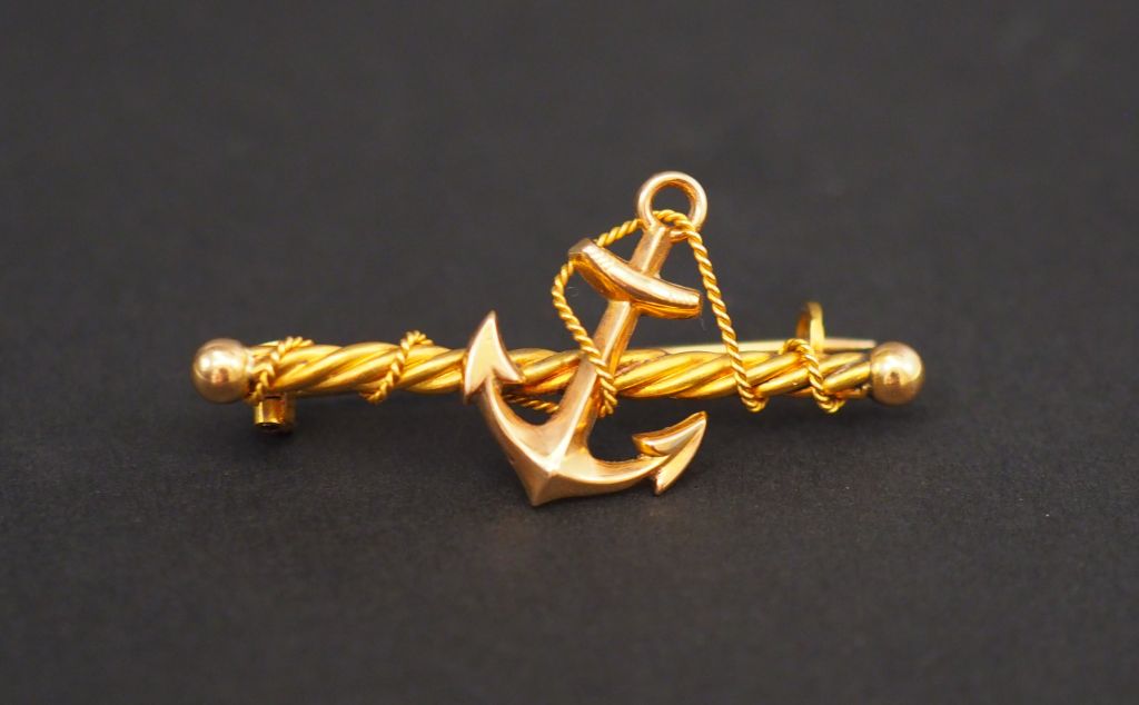 Broche en or jaune, à décor d'encre de marine. Long. 3,5 cm Poids.1,75 g