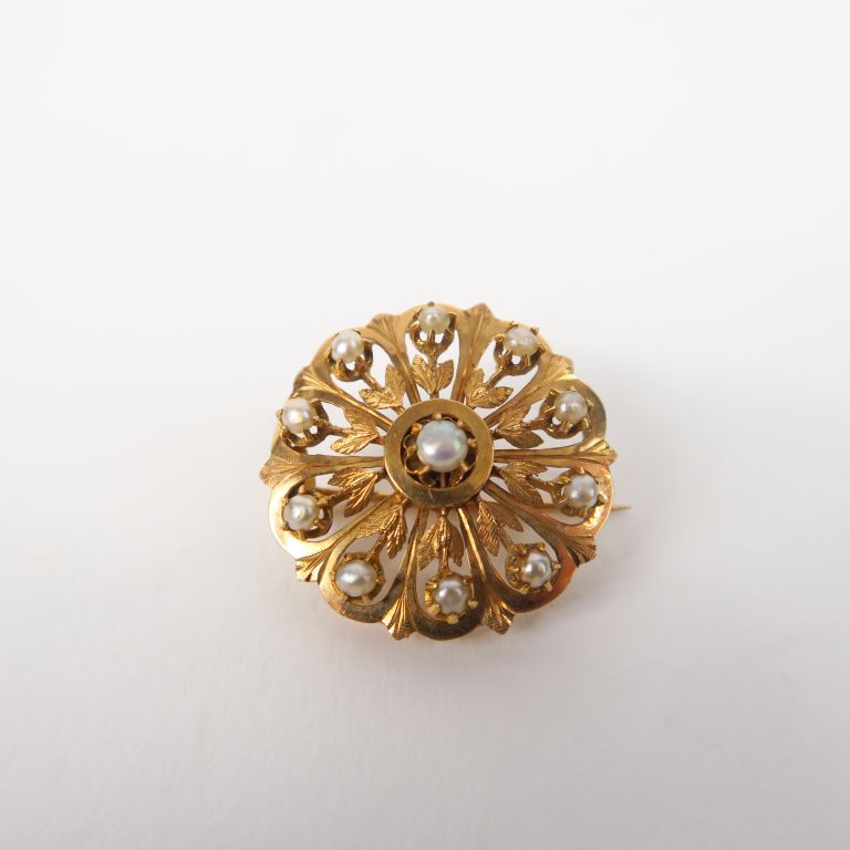 Broche Napoléon en or jaune à décor de perles. Poids tel. 4 g