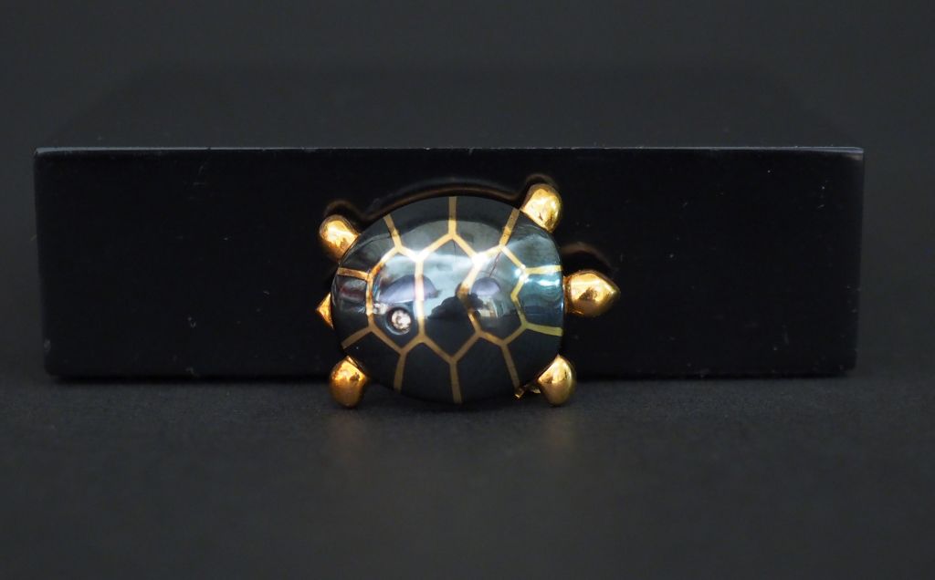 Broche "tortue" en or, émail et diamants. Marquée Carol. Signée, numérotée 2201 AL Poids tel : 8,09 g