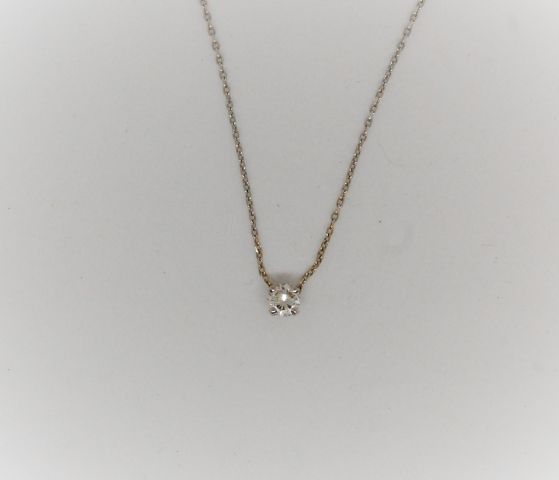 Lot de Chaine en or blanc retenant un diamant monté sur griffe au prix de 80 à 120 € en vente aux enchères par l'hôtel des ventes Primardeco