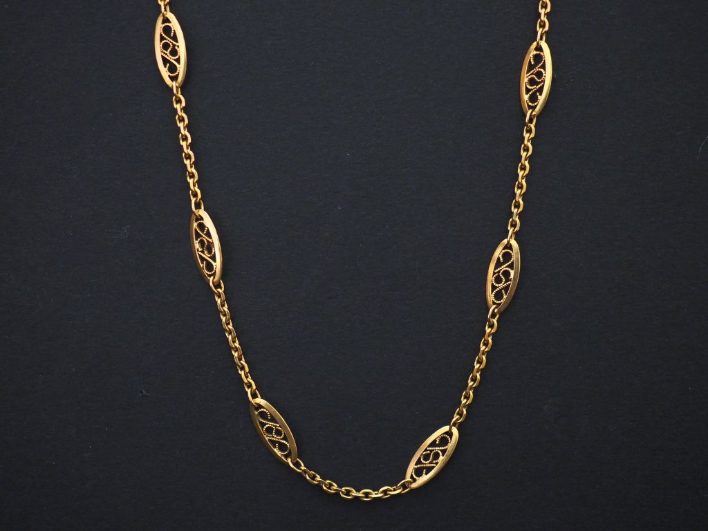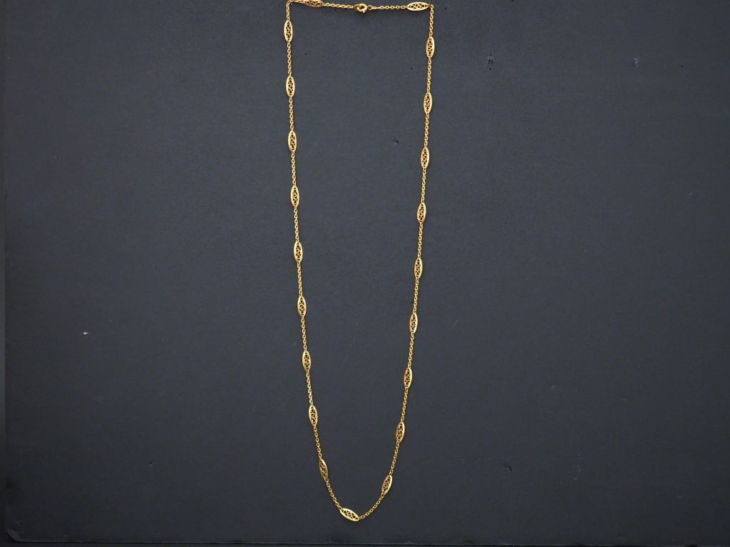 Chaine en or jaune, maille forçat, à décor de maillons ovales filigranés. Long. 60 cm Poids. 8,20 g