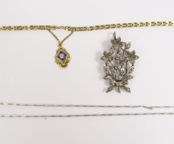 Chaîne en platine (2.65 g), et pendentif en argent et pierres à l’imitation du diamant figurant un bouquet de fleurs