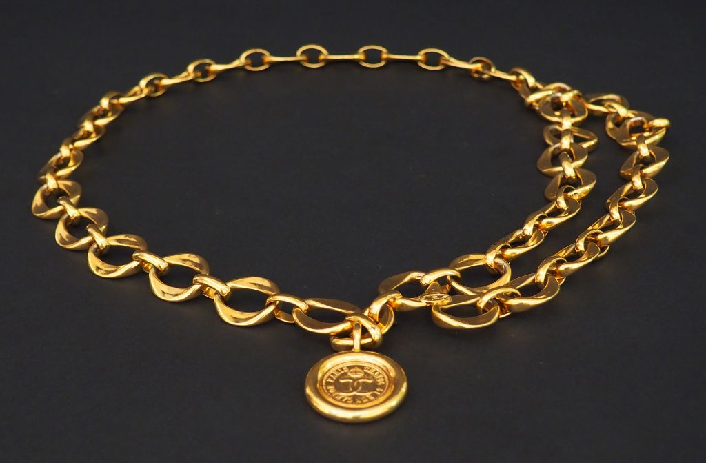 CHANEL. Ceinture en métal doré.
