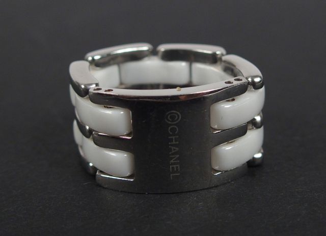 Lot de CHANEL, modèle Ultra. Bague souple grand modèle, en céramique blanc et au prix de 800 à 1000 € en vente aux enchères par l'hôtel des ventes Primardeco