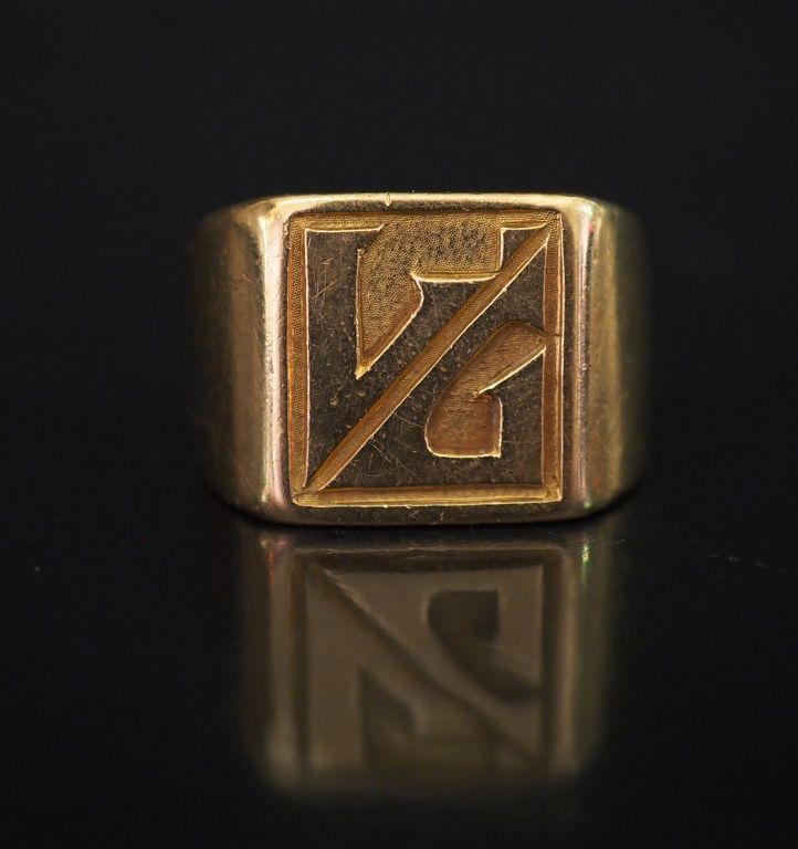 Chevalière en or, à décor de monogramme. TDD. 50 Poids : 18,72 g (à charge de contrôle)