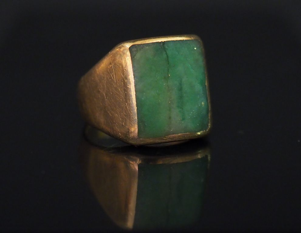 Chevalière en or et jade (?) Poids : 12,46 g