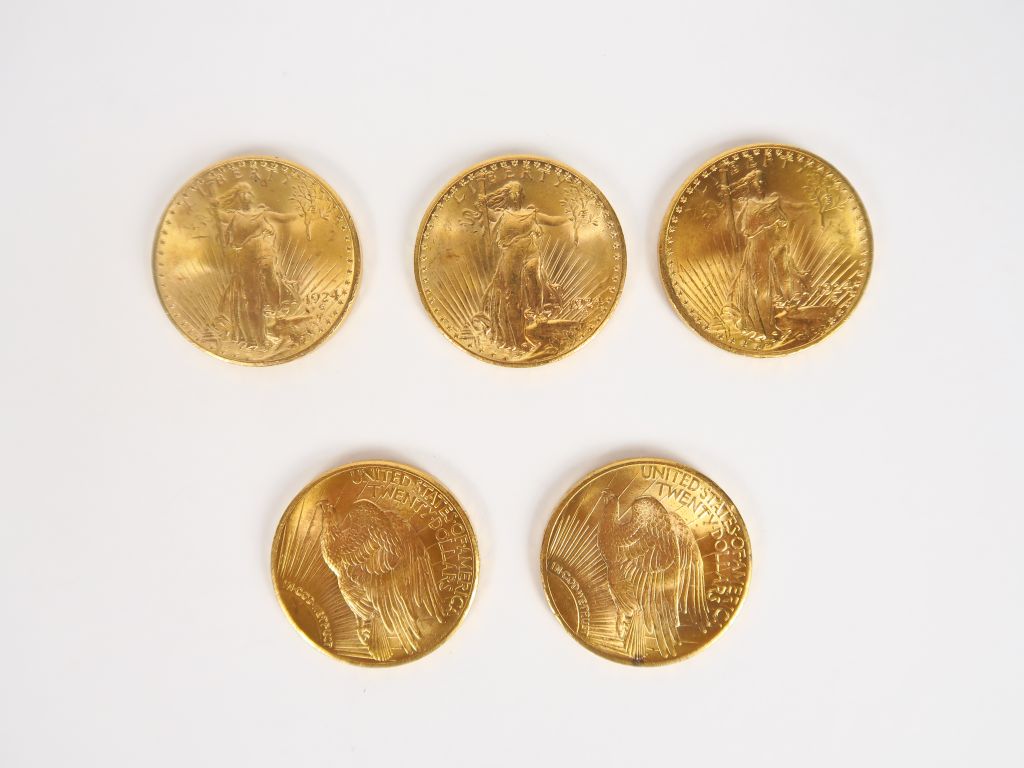 Lot de Cinq pièces de 20 Dollars or, 1924. au prix de à € en vente aux enchères par l'hôtel des ventes Primardeco