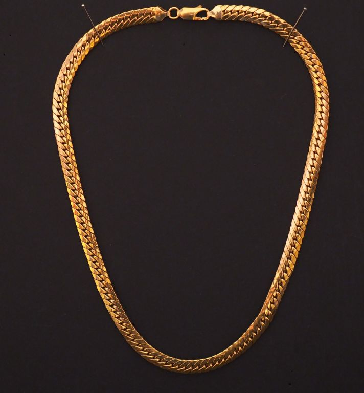 Collier articulé en or jaune, maille plate en chute. Poids. 22,36 g