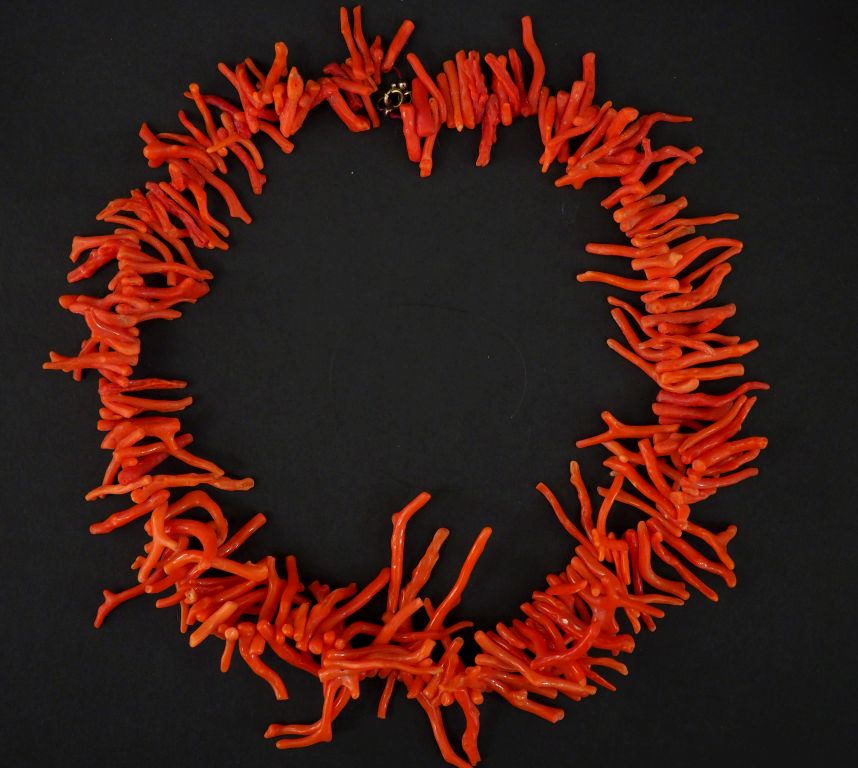 Lot de Collier composé de petites branches de corail. Fermoir en métal. Long. au prix de 50 à 80 € en vente aux enchères par l'hôtel des ventes Primardeco