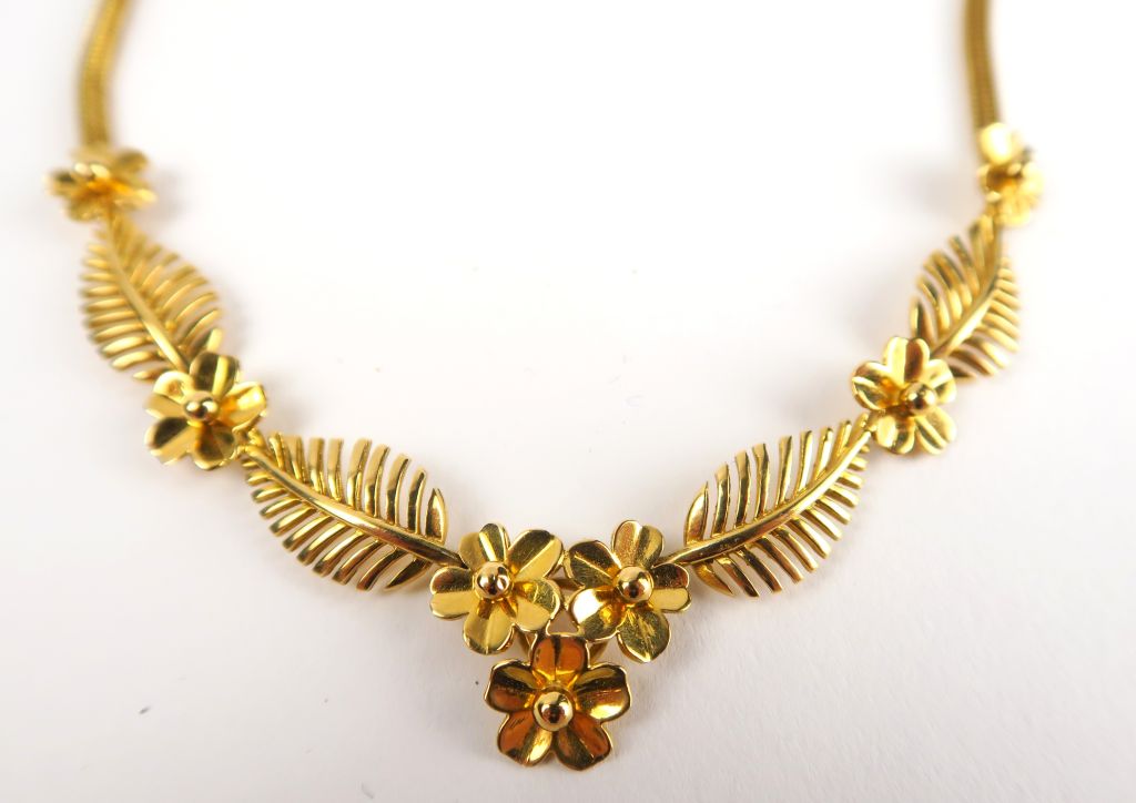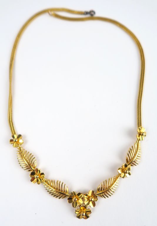 Collier en or, à décor de fleurs et de feuilles. Poids : 22,2 g (attache en métal)