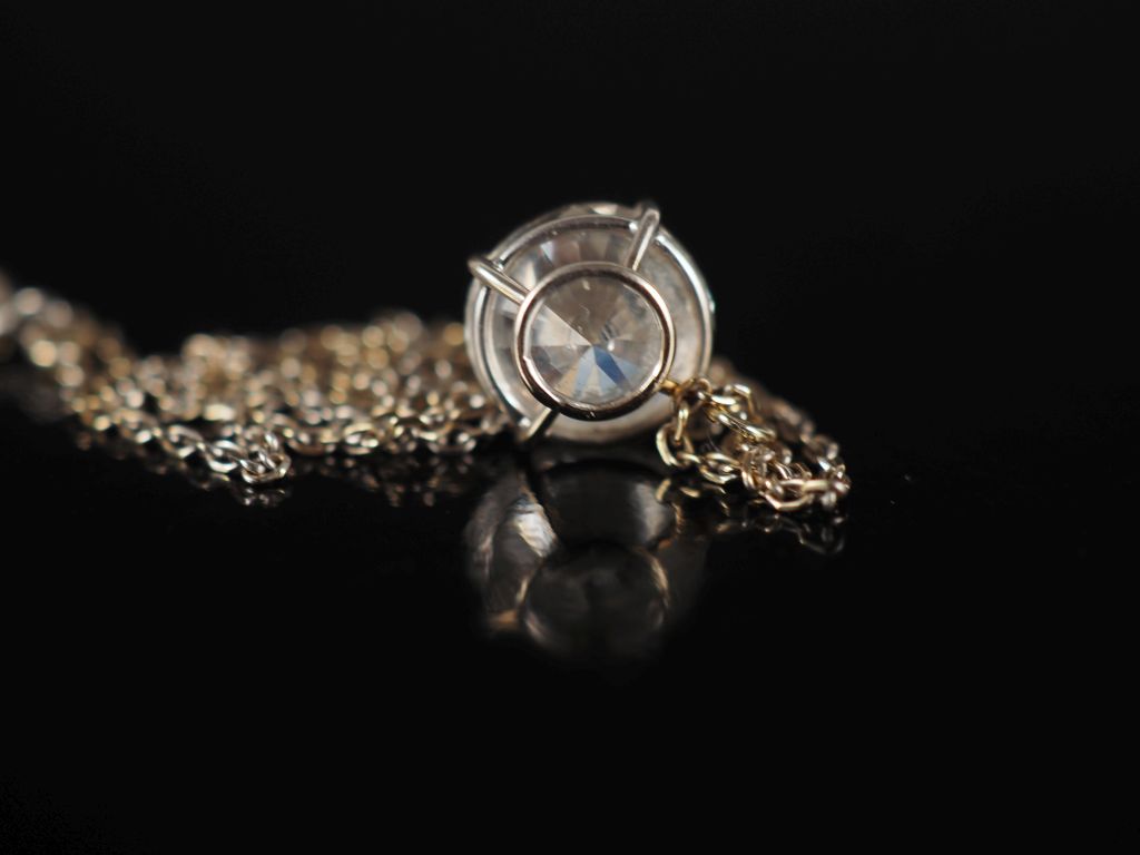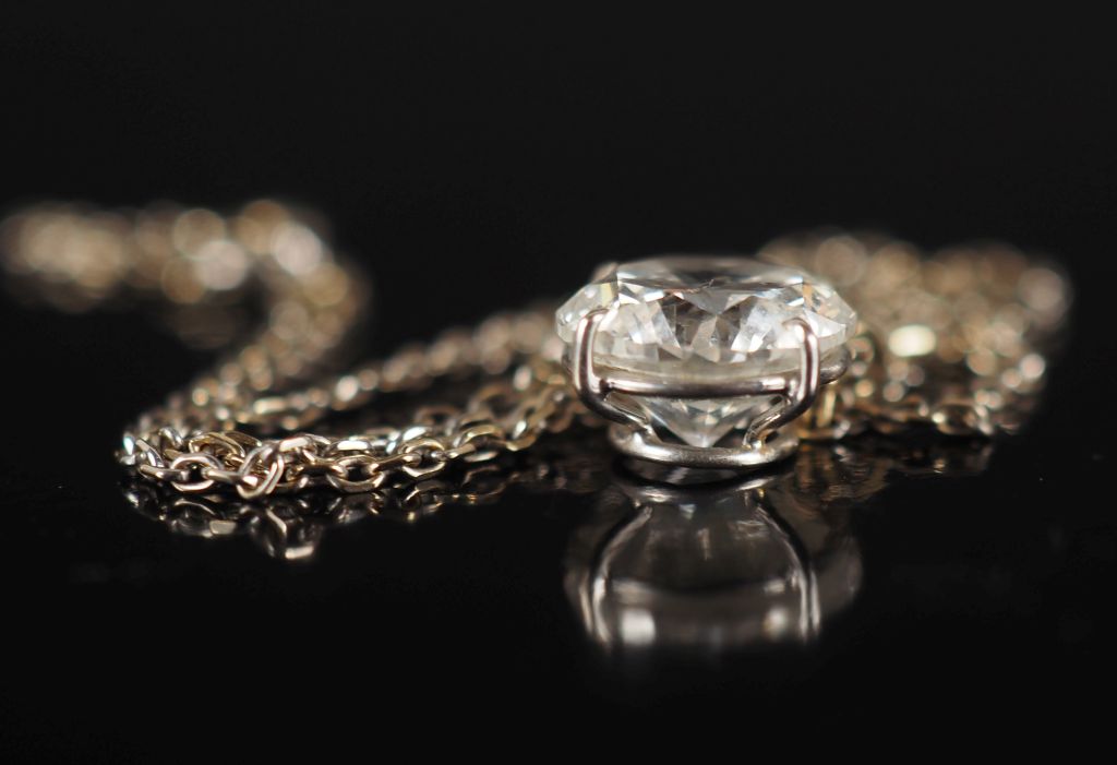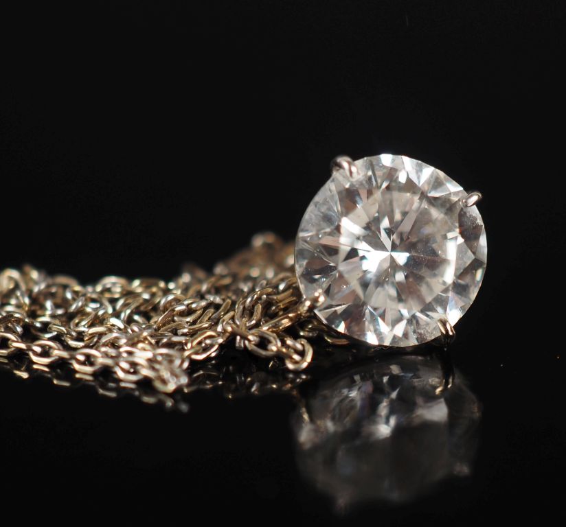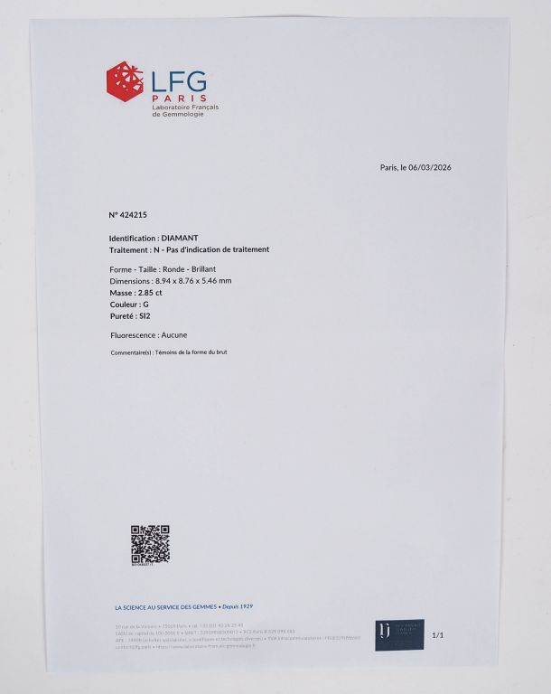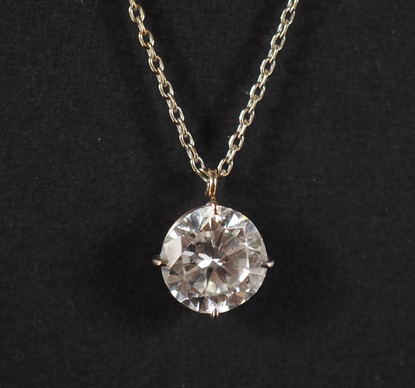 Collier en or blanc 750, maille forçat, agrémenté d'un diamant rond taille brillant de 2,85 ct G-SI2 Long. 38 cm Poids tel. 2,89 g Examen Préliminaire du Laboratoire de Gemmologie en date du 6/03/2026.