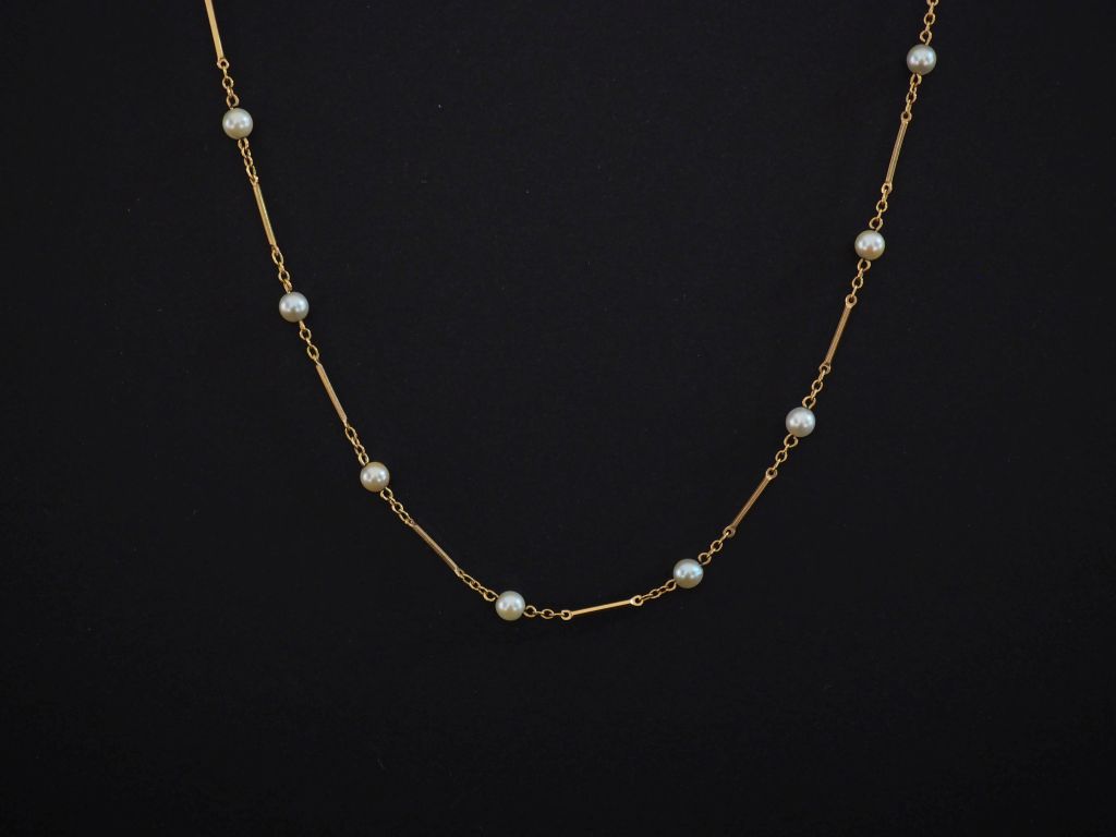 Collier souple en or jaune 750, composé de maillons rectangulaires et perles blanches alternés. Long. 47 cm Poids tel. 4,82 g