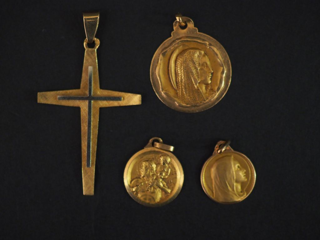 Croix et médailles en or. Poids : 7,88 g