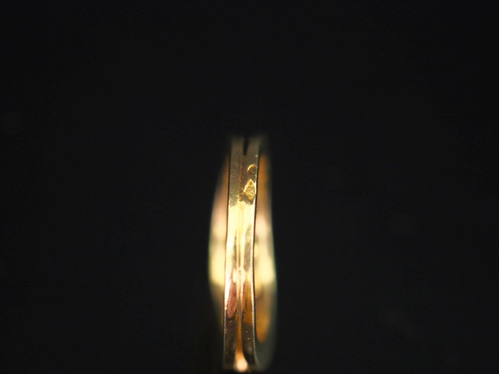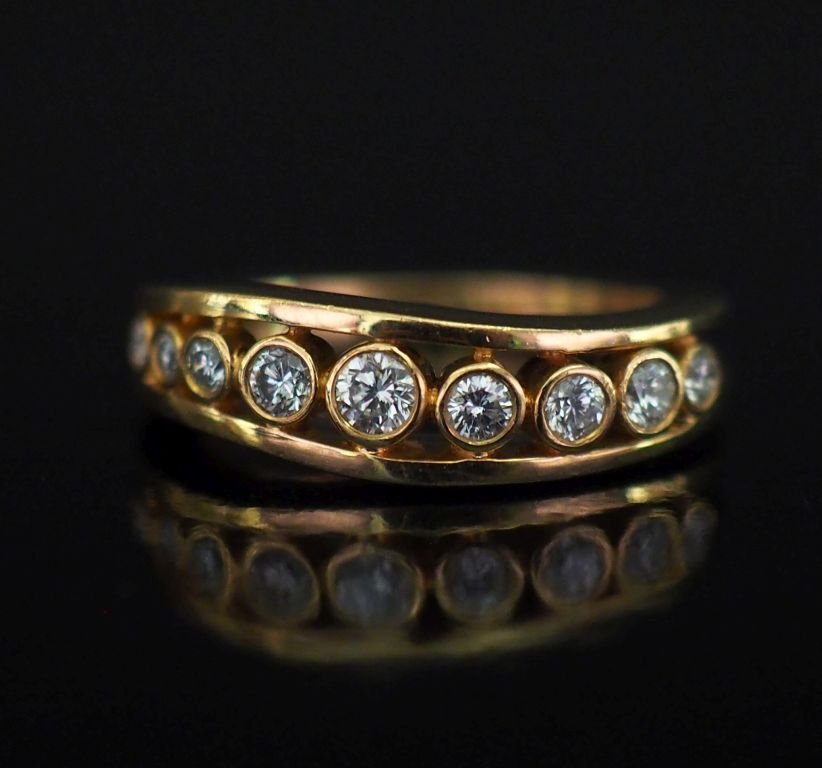 Demi alliance ajourée en or jaune 750, ornée d’une ligne de neuf diamants sertis clos. TDD. 51 Poids tel. 6,16 g