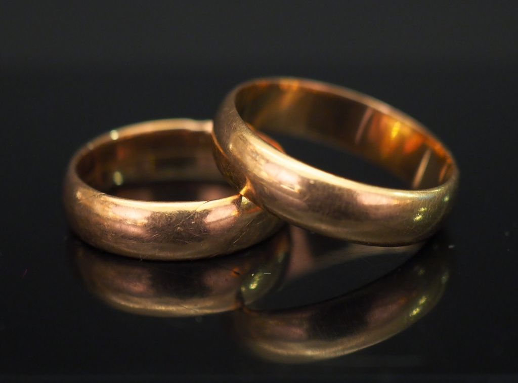 Deux alliances en or jaune. TDD. 59 et 52 Poids. 9,75 g