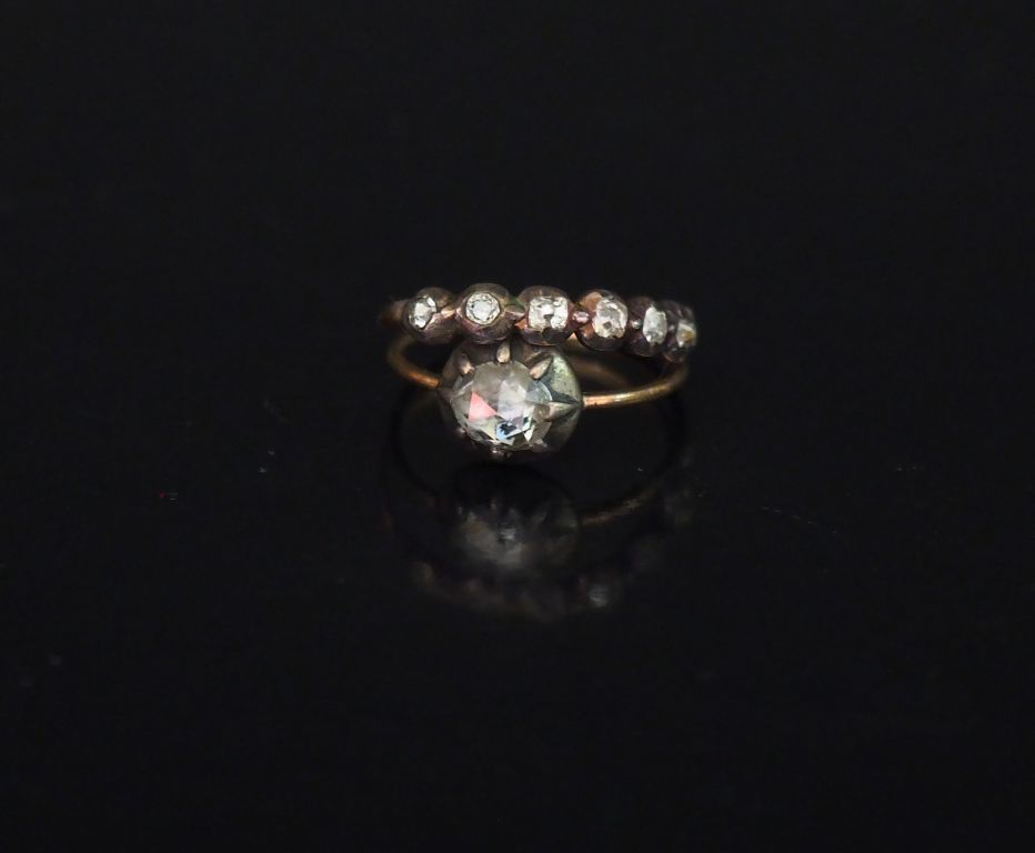 Deux différentres bagues en or jaune et argent, serties de diamants taillés en rose. TDD. 52 et 53 Poids tel. 2,56 g