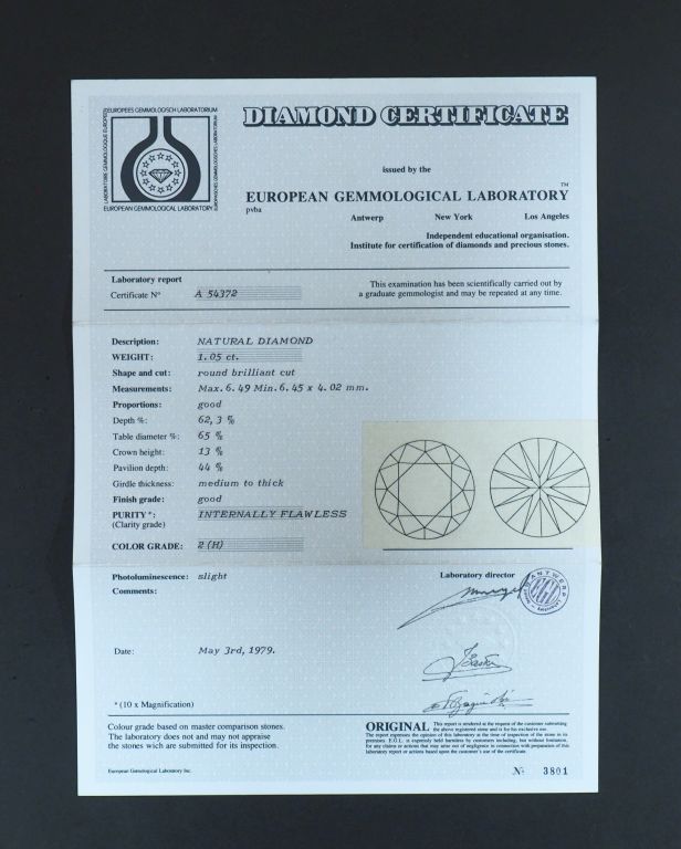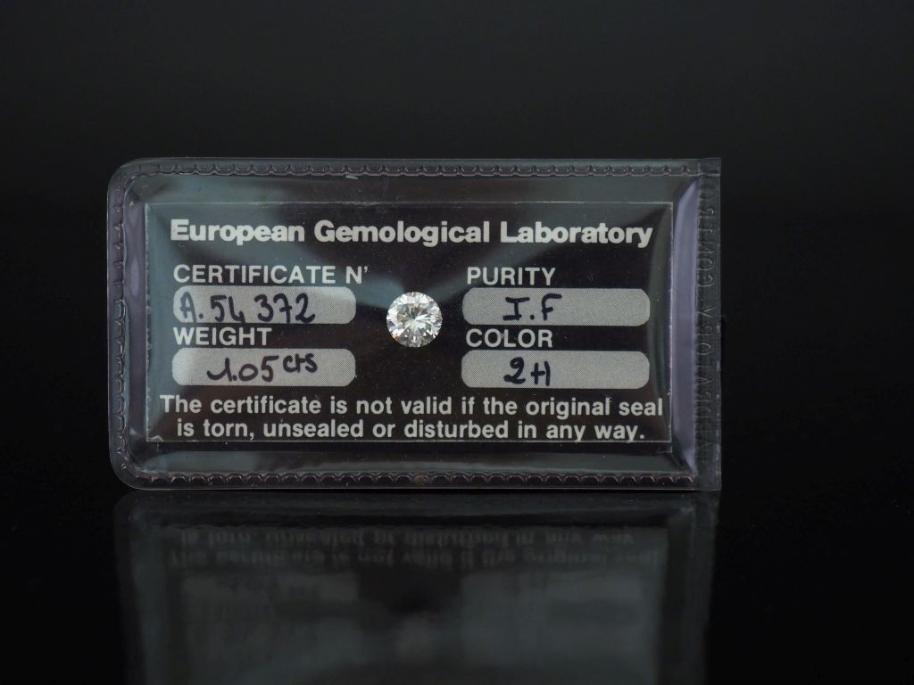 Diamant de 1,05 ct sur papier, taille ronde brillant, H-IF. Avec son certificat de l'International Gemmological Institute.