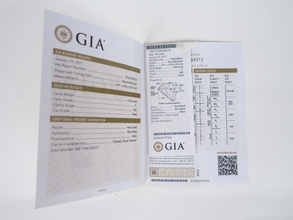 Diamant sur papier de 0,50 cts env. F VS2 avec certificat G.I.A n° 7246768312