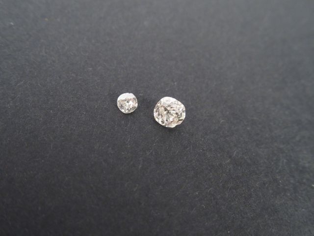 Diamant taille coussin de 0,80cts environ sur papier. On y joint un diamant taille ancienne de 0,25cts environ, sur papier.