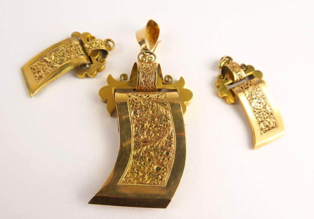 Différents éléments de giletière en or. Poids : 24 g