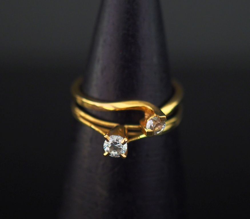 Ensemble comprenant deux bagues solitaires en or jaune 750, serties en leur entre d'une pierre à l'imitation du diamant. TDD. 49 et 52 Poids tel. 3,13 g