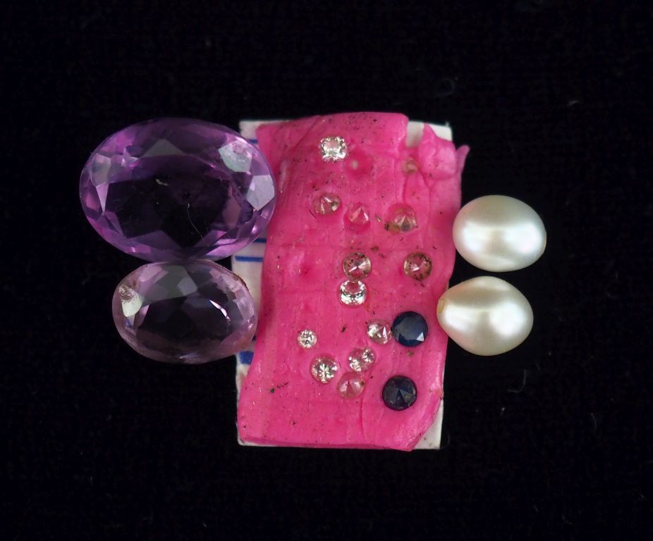 Ensemble comprenant : deux différentes améthystes, treize diamants ou imitation du diamant et deux petits saphirs. On y joint deux perles de culture blanches.