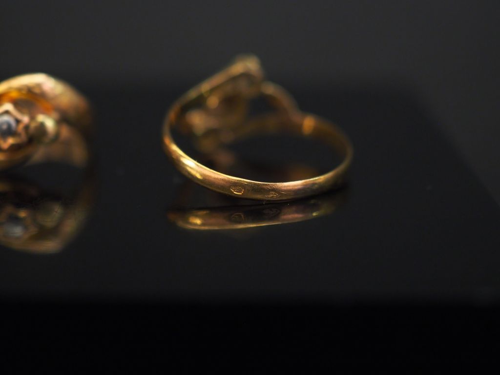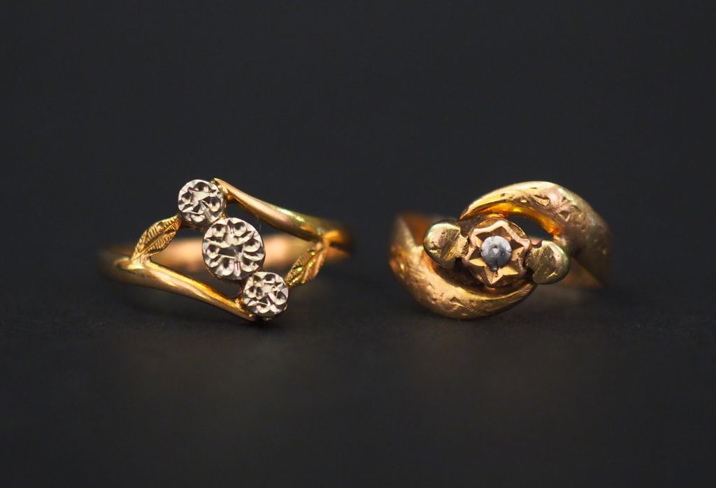 Ensemble comprenant deux petites bagues Napoléon III en or jaune. TDD. 45 et 54 Poids. 2,70 g (petites usures)