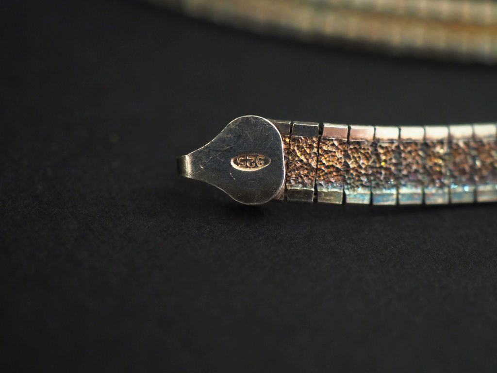 Ensemble comprenant : - un collier en argent 925, maille plate tressée. Long. 40 cm - un collier articulé en argent 925, maille plate, à décor martelé. Poids. 39,39 g