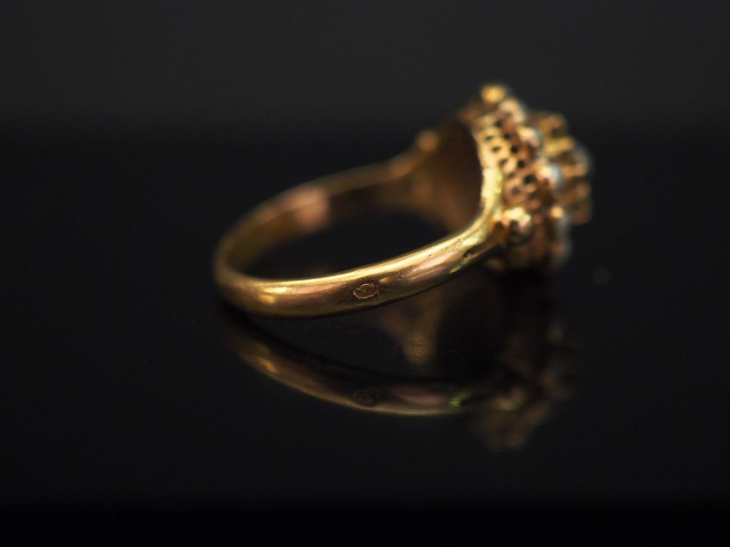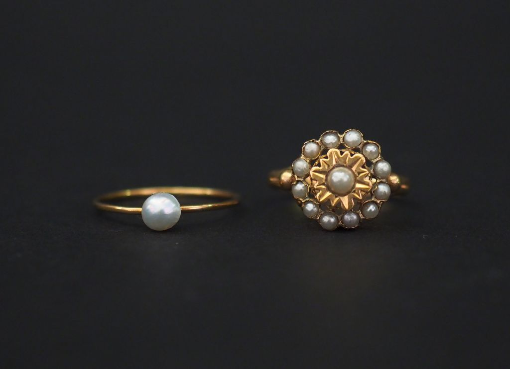 Ensemble comprenant : - une bague marguerite Napoléon III en or jaune et perles. TDD. 51 - une bague en or jaune, sertie en son centre d’une perle. TDD. 53 1/2 Poids tel. 3,49 g