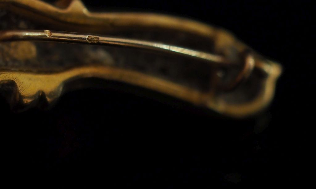Ensemble comprenant : - une petite broche en or jaune 750, à décor d'un ange et marquée "Bébé". Long. 3,3 cm (pique accidentée) - une petite épingle à cravate Napoléon III en or jaune 750, agrémentée d'une petite perle blanche. Long. 4,9 cm Poids tel. 2,33 g