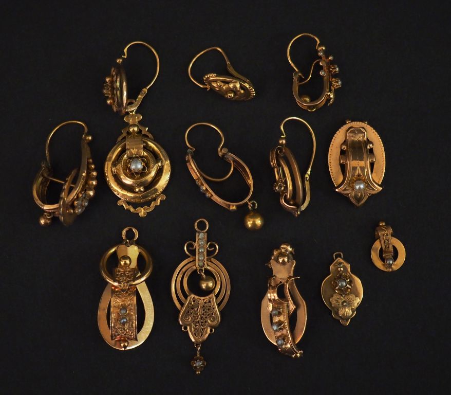 Lot de Ensemble de pendants d'oreilles Napoléon III en or et perles. Poids t au prix de 100 à 200 € en vente aux enchères par l'hôtel des ventes Primardeco