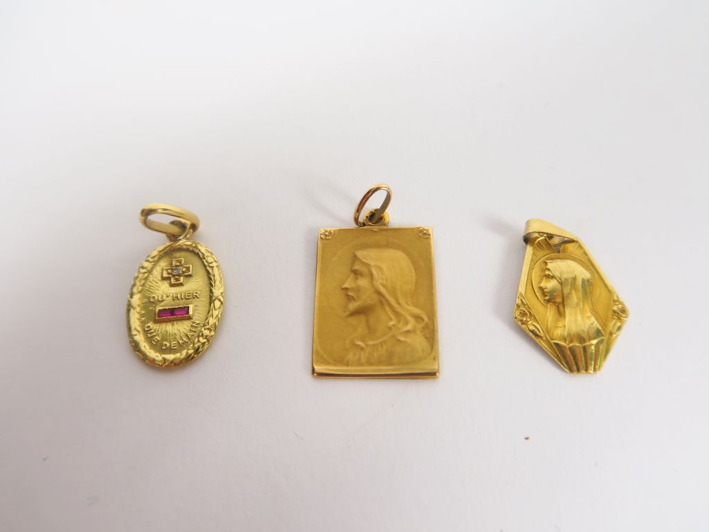 Ensemble de trois médailles en or. Poids. 7,9 gr