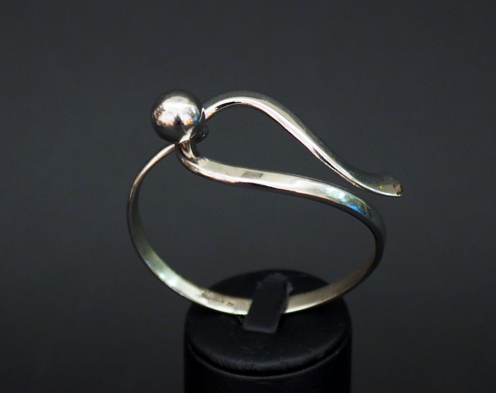 Fabrice PELLETIER Bracelet en argent de forme mouvementée, à décor d’une boule. Signé. Poids. 25,20 g On y joint un bracelet en métal, à décor d’un rectangle agrémenté d’une boule.