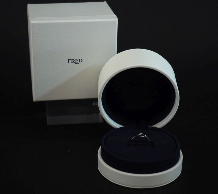 FRED Bague, Pretty Woman, mini modèle en or blanc 750, à décor de cœur et sertie d'un petit diamant. TDD. 55 Poids tel. 3,10 g Dans son écrin et sa boite d'origine.