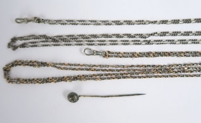 Giletière en argent et giletière en argent et vermeil. Poids : 34 g, On y joint une épingle de cravate en argent (1.30 g)